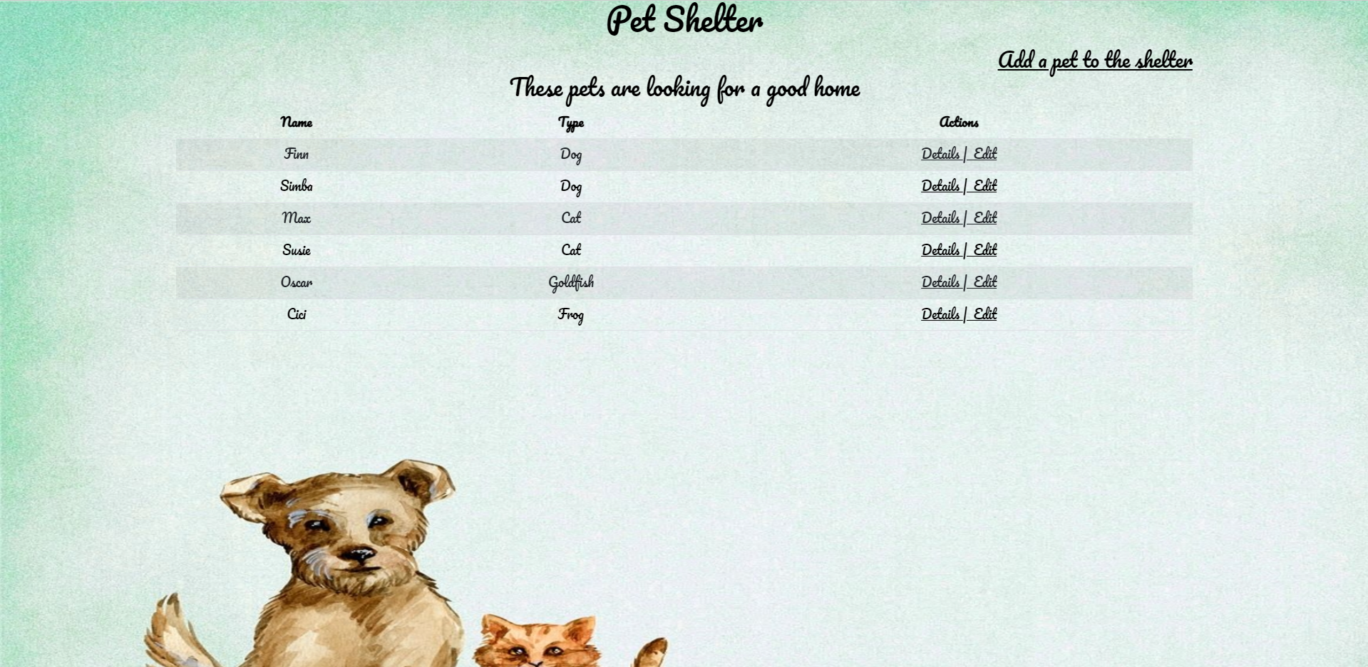 Application to add pets to adoption list, view pet details, edit pets, and adopt pets